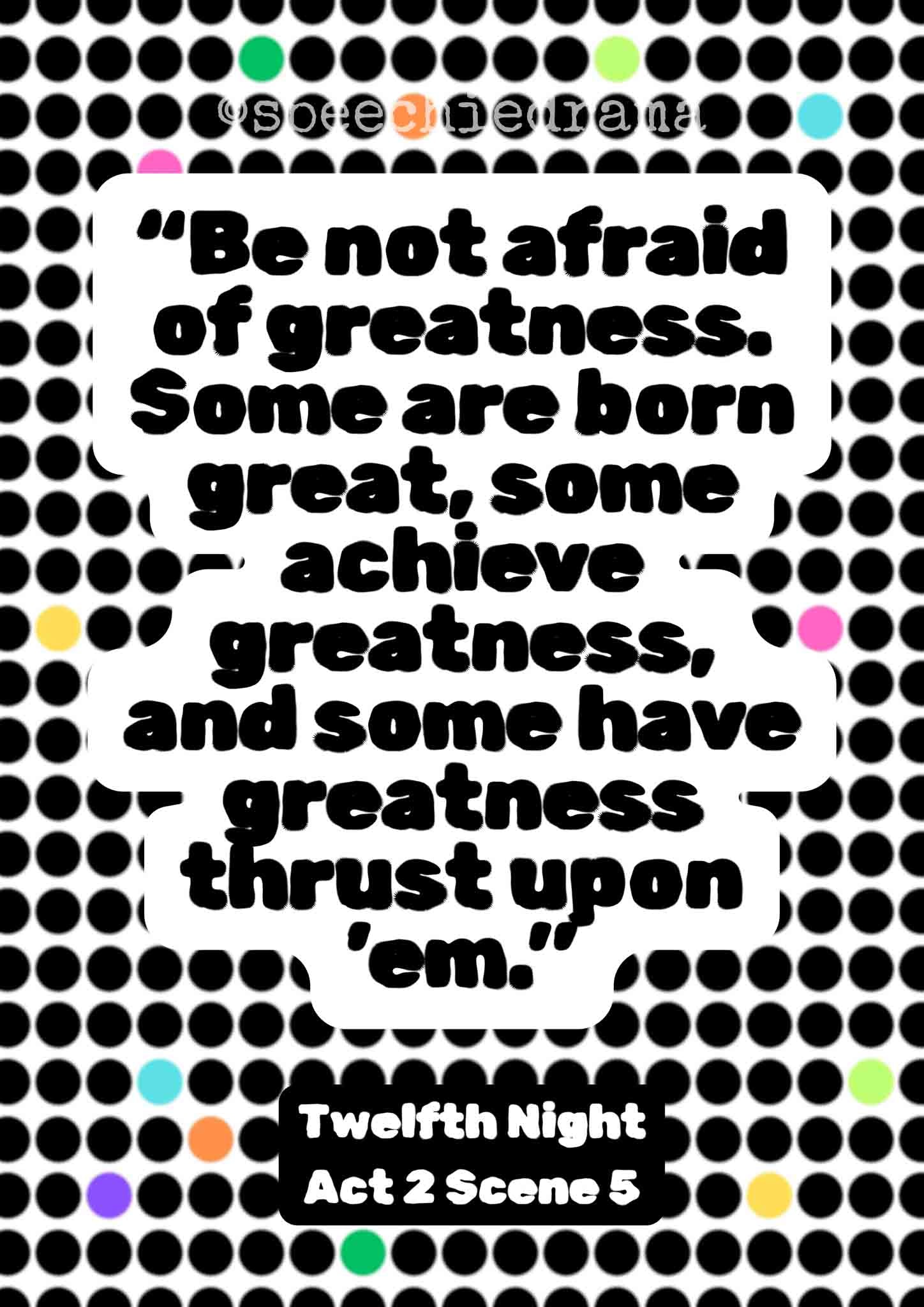 'Be not afraid of greatness. Some are born great, some achieve greatness, and some have greatness thrust upon 'em.'